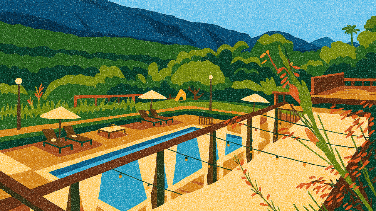 A pousada fica num lugar lindo com uma natureza exuberante.
